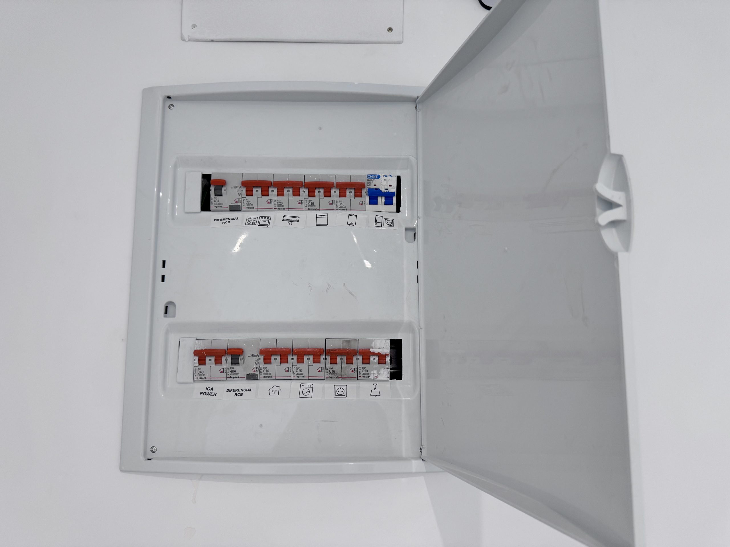Se modifican y cambian completamente las instalaciones de electricidad por el nuevo falso techo de pladur bajando tan solo unso 4 cm la altura original y se instala un nuevo cuadro general con separaciรณn de todas las fases segรบn normativa.